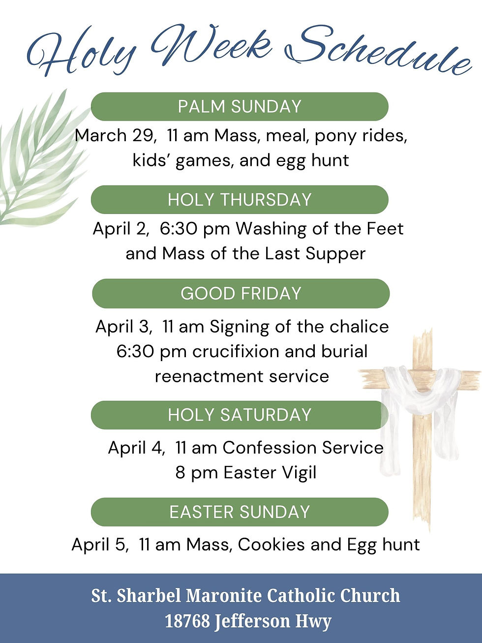 Holy Week Schedule